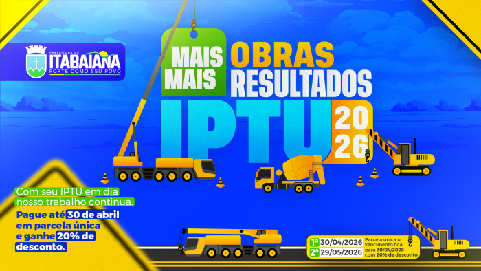 do Imposto Predial e Territorial Urbano (IPTU) de 2026. Até 30 de abril,